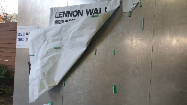 È«Äá ½Ã¹Îµé¿¡°Ô ¿¬´ë¿Í ÁöÁö¸¦ Ç¥½ÃÇϱâ À§ÇØ ¼¿ï´ëÇб³ ±³³»¿¡ ¼³Ä¡µÆ´ø '·¹³Í º®' ÀϺΰ¡ 18ÀÏ ÈÑ¼ÕµÈ Ã¤ ¹ß°ßµÆ½À´Ï´Ù.