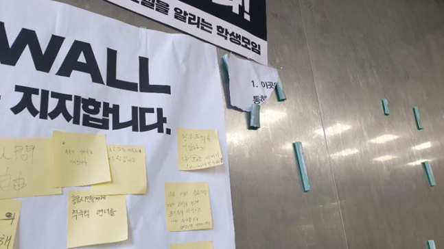 14ÀÏ ¿ÀÈÄ ¼¿ï µ¿´ë¹®±¸ Çѱ¹¿Ü±¹¾î´ëÇб³ ¾ß¿Ü°Ô½ÃÆÇ¿¡ ³ëµ¿ÀÚ¿¬´ë Çлý±×·ìÀÌ ÀÛ¼ºÇÑ È«Äá ¹ÎÁÖÈ ½ÃÀ§ ÁöÁö ´ëÀÚº¸°¡ ½ÃÀ§ ¹Ý´ë ´ëÀÚº¸·Î ÈѼյǾî ÀÖ´Ù.ÀϺΠÁß±¹ÀÎ À¯ÇлýµéÀº À§Ãª(Áß±¹ÆÇ īī¿ÀÅå) ´Üü´ëȹæ(´ÜÅ广) µîÀ» ÅëÇØ Çг» ´ëÀÚº¸ °Ô½Ã »óȲÀ» °øÀ¯ÇÏ¸ç ´ëÀÀÀ» ³íÀÇÇϰí, ´ëÀÚº¸¸¦ °Ô½ÃÇÑ Çлýµé¿¡ ´ëÇÑ ¹Ý°¨À» Ç¥ÃâÇϱ⵵ ÇÏ´Â °ÍÀ¸·Î ÀüÇØÁ³½À´Ï´Ù.