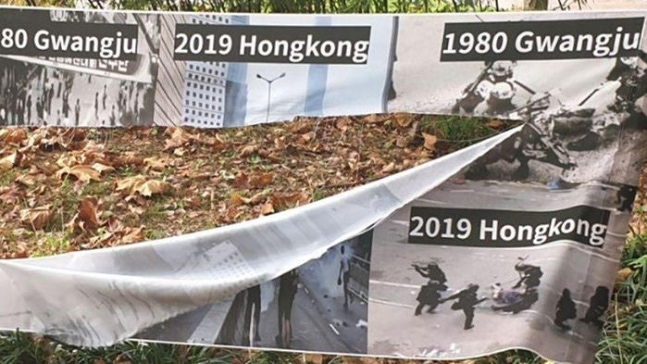 Àü³²´ëÇб³ Àι®´ëÇÐ Àα٠±³Á¤¿¡ ºÙÀÎ È«Äá ½ÃÀ§ ÁöÁö º®º¸ÀÎ '·¹³í ¿ù'¿¡ È«Äá ½ÃÀ§¸¦ ºñÆÇÇÏ´Â ±ÛÀÌ ÀûÇô ÀÖ´Ù.±¹³» ´ëÇÐ °÷°÷¿¡¼ È«Äá ½ÃÀ§¿¡ ¿¬´ë Àǻ縦 Ç¥½ÃÇÏ´Â Çѱ¹ ´ëÇлýµé°ú À̸¦ ºñÆÇÇÏ´Â ±¹³» Áß±¹ÀÎ À¯Çлýµé »çÀÌ¿¡ °¥µîÀÌ ½ÉÈÇÑ °¡¿îµ¥ ¹ß»ýÇÑ ÀÏÀ̱⠶§¹®ÀÔ´Ï´Ù.