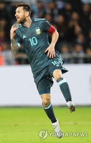 Argentina's Lionel Messi reacts during the International Friendly soccer match between Argentina and Uruguay at Bloomfield Stadium in Tel Aviv, Israel, 18 November 2019. EPA/ABIR SULTAN
