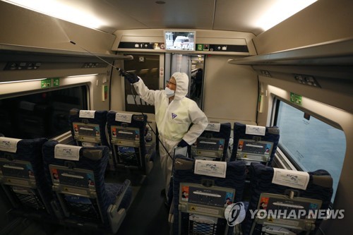 A sanitation worker sprays disinfectant for precaution against coronavirus on the train at Suseo Station in Seoul, South Korea, 24 January 2020. Over 800 people have been affected by the Wuhan pneumonia so far, mostly in China, and at least 25 died from the virus. The respiratory virus was first detected in Wuhan, China, and can be passed between humans. So far it has spread to the USA, Thailand, South Korea, Japan, Singapore and Taiwan. EPA/JEON HEON-KYUN