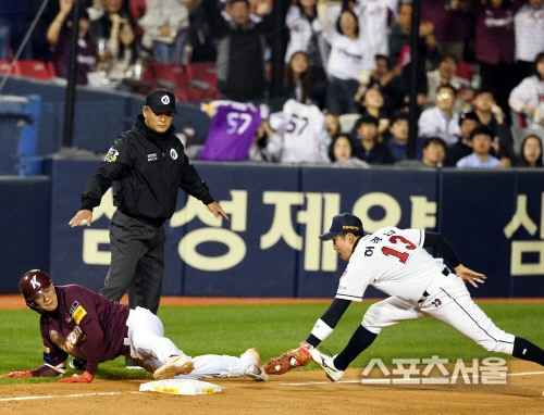 Ű¿ò ¼Û¼º¹®ÀÌ 23ÀÏ Àá½Ç ±¸Àå¿¡¼ ÁøÇàµÈ ¡®2019 KBO Æ÷½ºÆ®½ÃÁ𡯠Çѱ¹½Ã¸®Áî 2Â÷Àü µÎ»ê°úÀÇ °æ±â¿¡¼ 1-0À¸·Î ¾Õ¼± 2ȸ ¾ÈŸ·Î 3·ç¿¡ ¾ÈÂøÇϰíÀÖ´Ù. 2019.10.23. Àá½Ç