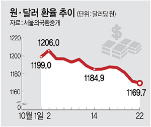 23ÀÏ ¿ÀÀü 9½Ã 30ºÐ ÇöÀç ¼¿ï ¿Üȯ½ÃÀå¿¡¼ ¿ø¡¤´Þ·¯ ȯÀ²Àº ÀüÀÏ ´ëºñ 4.6¿ø ¿À¸¥ 1174.3¿øÀ» ±â·ÏÇß´Ù. Àü³¯ÀÎ 22ÀÏ¿¡´Â ÀüÀÏ ´ëºñ 2.3¿ø ³»¸° 1169.7¿ø¿¡ ¸¶°¨Çϸç 7¿ù 4ÀÏ(1168.6¿ø) ÀÌÈÄ 3°³¿ù¿© ¸¸¿¡ °¡Àå ³·Àº ¼öÁØÀ» ±â·ÏÇß´Ù. ÀÌ´Â ¹Ì¡¤Áß ¹«¿ªºÐÀïÀÌ °ÝÈµÇ¸é¼ 1220¿øÀ» µ¹ÆÄÇÑ 8¿ù 13ÀÏ(1222.2¿ø)°ú ºñ±³ÇÒ ¶§ ¹«·Á 4.3% ¶³¾îÁø ¼öÁØÀÌ´Ù. ¹Ì¡¤Áß ¹«¿ªÇù»óÀÌ ½º¸ôµô(ºÎºÐÇÕÀÇ)¿¡ µµ´ÞÇß´Ù´Â ¼Ò½Ä°ú ÇÔ²² ¾ÈÀüÀÚ»ê ȸÇÇ ½É¸®°¡ ¾àÇØÁø µ¥ µû¸¥ °ÍÀ¸·Î Ç®À̵ȴÙ. ¿À´Â 29ÀÏ(ÇöÁö½Ã°£) ¹Ì±¹ ¿¬¹æ°ø°³½ÃÀåÀ§¿øÈ¸(FOMC) ȸÀÇ¿¡¼ ±âÁرݸ®°¡ Ãß°¡·Î ÀÎÇ쵃 °¡´É¼ºÀÌ Ä¿Á³´Ù´Â ±â´ëµµ ÇѸòÇß´Ù.