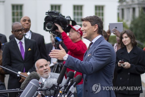 White House Deputy Press Secretary Hogan Gidley speaks with the news media at the White House in Washington, DC, USA, 22 October 2019. Gidley responded to questions about US President Donald J. Trump's use of the word 'lynching' in a tweet regarding the impeachment inquiry by the House of Representatives. EPA/ERIK S. LESSER
