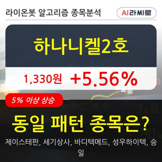 Çϳª´ÏÄÌ2È£23ÀÏ ¿ÀÈÄ Çϳª´ÏÄÌ2È£(099350)°¡ Å©°Ô »ó½ÂÇϰí ÀÖ´Ù.