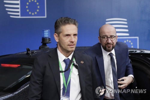 Belgian Prime Minister Charles Michel (R) arrives at the second day of a European Summit at the European Council in Brussels, Belgium, 18 October 2019. The European Union (EU) and the British government have reached a tentative Brexit deal that still must be ratified. EPA/Olivier Matthys / POOL
