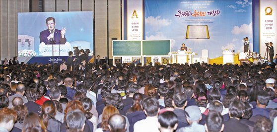 ½ÅõÁö¿¹¼ö±³È¸°¡ Áö³ 4ÀÏ ¼¿ï ±×·£µå ÀÎÅÍÄÁƼ³ÙÅ» ÆÄ¸£³ª½º È£ÅÚ¿¡¼ °³ÃÖÇÑ ¡®ÁÖ À縲°ú Ãß¼ö È®ÀÎ ´ëÁýȸ¡¯ÀÇ Àü°æ. À̸¸Èñ ÃÑȸÀåÀÌ ÁøÇàÇÏ´Â Àü±¹ ¼øÈ¸ ¸»¾¸´ëÁýȸÀÇ Ã¹ Çà»ç·Î, 3000¿© ¸íÀÌ ¸ðÀÌ´Â µî ¼ºÈ²À» ÀÌ·ð´Ù. [»çÁø ½ÅõÁö¿¹¼ö±³È¸] ½ÅõÁö¿¹¼ö±³ Áõ°ÅÀ帷¼ºÀü(ÀÌÇÏ ½ÅõÁö¿¹¼ö±³È¸) À̸¸Èñ ÃÑȸÀåÀÌ Áö³ 4ÀϺÎÅÍ ÁøÇà ÁßÀÎ Àü±¹ ¼øÈ¸ ¡®¸»¾¸´ëÁýȸ¡¯¿¡ 5000¿© ¸íÀÌ ¸ðÀÌ´Â µî Å« ¼ºÈ²À» ÀÌ·ç°í ÀÖ´Ù.