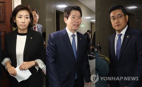 ´õºÒ¾î¹ÎÁÖ´ç ÀÌÀοµ(°¡¿îµ¥), ÀÚÀ¯Çѱ¹´ç ³ª°æ¿ø(¿ÞÂÊ), ¹Ù¸¥¹Ì·¡´ç ¿À½Åȯ(¿À¸¥ÂÊ) ¿ø³»´ëÇ¥°¡ Áö³ 14ÀÏ ¿ÀÀü »ç¹ý°³Çõ ¹ý¾È ó¸® ¹æ¾ÈÀ» ÇùÀÇÇϱâ À§ÇÑ ¿ø³»´ëÇ¥ ȸµ¿À» Çϱâ À§ÇØ ±¹È¸ ¿î¿µÀ§¿øÀå½Ç¿¡ µé¾î°¡°í ÀÖ´Ù.[»çÁøÁ¦°ø=¿¬ÇÕ´º½º] ¿©¾ß´Â 16ÀÏ ÆÐ½ºÆ®Æ®·¢(½Å¼Ó󸮾ȰÇ)À¸·Î ÁöÁ¤µÈ °ËÂû¡¤»ç¹ý°³Çõ¾ÈÀ» ³íÀÇÇϱâ À§ÇØ '2+2+2'(°¢ ´ç ¿ø³»´ëÇ¥¿Í ÀÇ¿ø 1¸í) ȸµ¿À» ÇÑ´Ù.