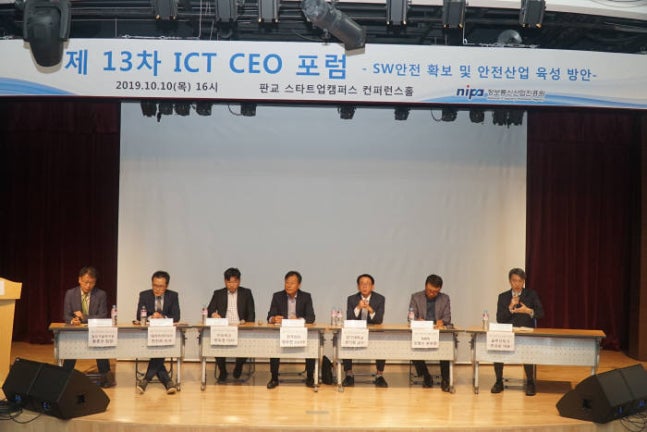 ÇÑÂùÈñ ´ë¾ÆÆ¼¾ÆÀÌ ÀÌ»ç´Â Á¤º¸Åë½Å»ê¾÷ÁøÈï¿ø(NIPA) ÁÖÃÖ, 'SW¾ÈÀü È®º¸ ¹× ¾ÈÀü»ê¾÷ À°¼º ¹æ¾È'À» ÁÖÁ¦·Î ÆÇ±³ ½ºÅ¸Æ®¾÷Ä·ÆÛ½º¿¡¼ ¿¸° 'ICT CEO Æ÷·³'¿¡¼ SW ¾ÈÀü Àη ¾ç¼º Á߿伺À» °Á¶Çß´Ù.