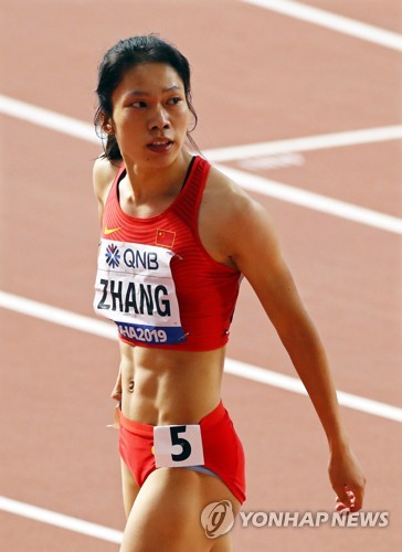 Man Zhang of China reacts after competing in the women's 200m heats at the IAAF World Athletics Championships 2019 at the Khalifa Stadium in Doha, Qatar, 30 September 2019. EPA/DIEGO AZUBEL