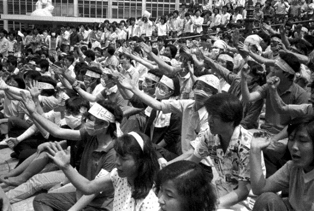 1987³â 6¿ùÇ×Àï ´ç½Ã ¼¿ï ¸íµ¿¼º´ç¿¡¼ ½Ã¹Î°ú ÇлýµéÀÌ ³ó¼ºÇϰí ÀÖ´Ù. Á¤Ä¡ÇÐÀÚ À̰üÈľ¾´Â ¡°86¼¼´ë´Â ¡®¹Ú±ÙÇý źÇÙ¡¯À» À̲ø¾î³½ ÃкÒÀ» ÅëÇØ 6¿ùÇ×Àï ¼»ç¸¦ ºÎȰ½ÃŰ·Á ÇßÀ¸³ª, µÑÀº ÀüÇô ´Ù¸¥ ¼»ç¡±¶ó°í ¸»Çß´Ù. °æÇâ½Å¹® ÀÚ·á»çÁø(¹Ú¿ë¼ö¾¾ Á¦°ø)°íÀӱݡ¤Á¤±ÔÁ÷¡¤±â¼º¼¼´ë¶ó´Â