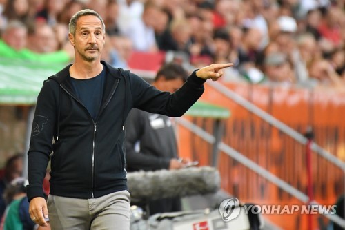 Frankfurt's head coach Adi Huetter during the German Bundesliga soccer match between FC Augsburg and Eintracht Frankfurt in Augsburg, Germany, 14 September 2019. EPA/PHILIPP GUELLAND CONDITIONS - ATTENTION: The DFL regulations prohibit any use of photographs as image sequences and/or quasi-video.