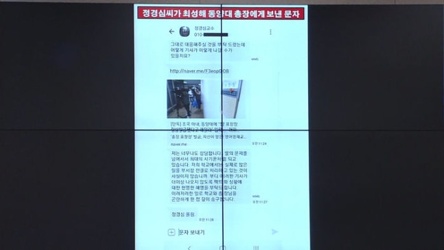 Á¤°æ½É ±³¼ö ¹ß½ÅÀÎÀ¸·Î º¸³½ ¹®ÀÚ¿¡¼´Â "Àú´Â ³Ê¹«³ªµµ Âü´ãÇÕ´Ï´Ù. µþÀÇ ¹®Á¦¸¦ ³Ñ¾î¼¼ Èñ´ëÀÇ »ç±â²Ûó·³ µÇ°í ÀÖ½À´Ï´Ù. ÀúÈñ Çб³¿¡¼´Â ½ÇÁ¦·Î ¸¹Àº ÀÏÀ» ºÎ¼Àå Àü°á·Î ó¸®Çϰí ÀÖ´Â °ÍÀÌ »ç½ÇÀÌÁö ¾Ê½À´Ï±î. ºÎµð ÀÌ·¯ÇÑ ±â»ç°¡ ´õÀÌ»ó ³ª¿ÀÁö ¾Êµµ·Ï ÆÑÆ®¿Í »óȲ¿¡ ´ëÇÑ Çö¸íÇÑ ÇØ¸íÀ» ºÎʵ右´Ï´Ù. ÀÌ·¯Àú·¯ÇÑ ÀÏ·Î Çб³¿Í ÃÑÀå´ÔÀ» °ï¶õÇÏ°Ô ÇÑ Á¡ ±íÀÌ ¼Û±¸ÇÕ´Ï´Ù. Á¤°æ½É ¿Ã¸²" À̶ó´Â ³»¿ëÀÌ ´ã°ÜÀÖ½À´Ï´Ù.