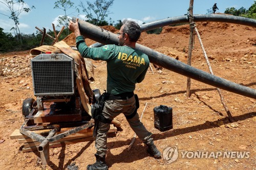 Environment agents and Federal Police destroy machinery used for illegal mining on the bank of river Xingu, 70km from Altamira town in the Amazon, Brazil, 31 August 2019. As the Amazon continues on fire, the federal police fights against illegal mining and deforestation in the heart of the Amazon, in the second most violent area in Brazil. EPA/SEBASTIAO MOREIRA ACOMPAÑA CRÓNICA AMAZONÍA INCENDIOS