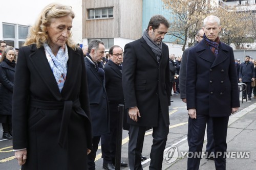 (LtoR) French Justice Minister Nicole Belloubet, French Interior Minister Christophe Castaner and French Culture Minister Franck Riester stand outside Charlie Hebdo's former offices 07 January 2020 in Paris, France, during a ceremony marking the fifth anniversary of the jihadist attack of the satirical magazine that killed 12 people. The attack on the weekly with its long history of mocking Islam and other religions was the first in a series of assaults that have claimed more than 250 lives since 07 January 2015, mostly at the hands of young French-born jihadists. EPA/FRANCOIS GUILLOT / POOL MAXPPP OUT