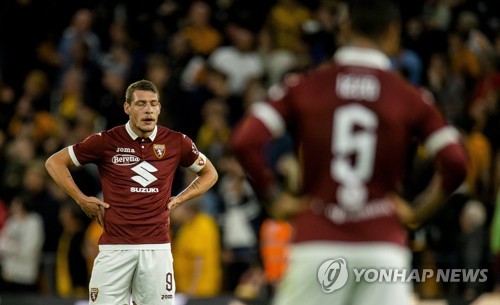 Torino's Andrea Belotti reacts during the UEFA Europa League playoff second leg soccer match between Wolverhampton W?anderers and Torino FC in Wolverhampton, Britain, 29 August 2019. EPA/PETER POWELL .