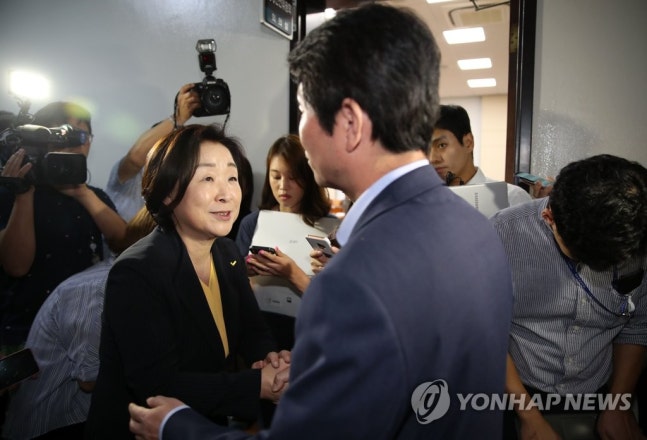 (¼­¿ï=¿¬ÇÕ´º½º) ±èÀÎö ±âÀÚ = ´õºÒ¾î¹ÎÁÖ´ç ÀÌÀοµ ¿ø³»´ëÇ¥¿Í Á¤ÀÇ´ç ½É»óÁ¤ ´ëÇ¥°¡ 29ÀÏ ¿ÀÀü ±¹È¸¿¡¼­ ¿­¸° Á¤Ä¡°³ÇõƯº°À§¿øÈ¸ ÀüüȸÀǸ¦ ¸¶Ä¡°í ¸¸³ª ÀλçÇϰí ÀÖ´Ù. 2019.8.29