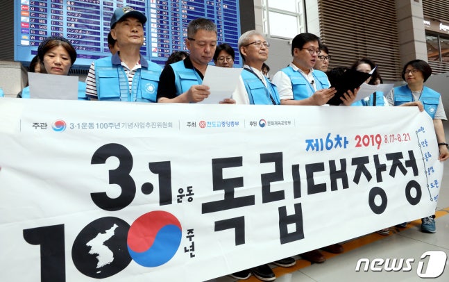 (ÀÎõ°øÇ×=´º½º1) ¹ÚÁ¤È£ ±âÀÚ = 3¤ý1¿îµ¿ 100ÁÖ³â±â³ä»ç¾÷ÃßÁøÀ§¿øÈ¸ Á¦6Â÷ µ¶¸³´ëÀåÁ¤ ¼ø·Ê´Ü ±è´ë¼± ´ÜÀå°ú ´Ü¿øµéÀÌ 17ÀÏ ¿ÀÀü ÀÎõ±¹Á¦°øÇ× Ãâ±¹Àå¿¡¼ ¿¸° 3¤ý1¿îµ¿ 100ÁÖ³â Á¦6Â÷ µ¶¸³´ëÀåÁ¤ ÃâÁ¤½Ä¿¡¼ ÃâÁ¤ °áÀǹ®À» ¹ßÇ¥Çϰí ÀÖ´Ù.