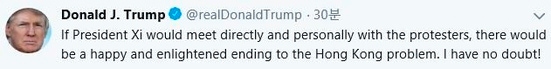 Æ®·³ÇÁ ´ëÅë·ÉÀº 15ÀÏ(ÇöÁö½Ã°£) ÀÚ½ÅÀÇ Æ®À§ÅÍ¿¡ " ¸¸¾à ½Ã ÁÖ¼®ÀÌ È«Äá ½ÃÀ§´ë¸¦ Á÷Á¢ ¸¸³´Ù¸é È«Äá »çÅ´ ÇູÇϰí Á» ´õ ³ªÀº °á¸»À» ¸ÎÀ» ¼ö ÀÖÀ» °Í"À̶ó¸ç "Àå´ãÇÑ´Ù"°í Çß´Ù.