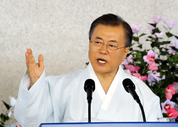 ¹® ´ëÅë·É, ¡°2045³â ±¤º¹ 100³â¿¡ ÆòȤýÅëÀÏ·Î ÇϳªµÈ ³ª¶ó·Î¡± - ¹®ÀçÀÎ ´ëÅë·ÉÀÌ 15ÀÏ ¿ÀÀü õ¾È µ¶¸³±â³ä°ü °Ü·¹ÀÇ Áý¿¡¼ ¿¸° Á¦74Áֳ⠱¤º¹Àý °æÃà½Ä¿¡¼ °æÃà»ç¸¦ Çϰí ÀÖ´Ù. 2019.8.15 ¿¬ÇÕ´º½º¹®ÀçÀÎ ´ëÅë·ÉÀÌ 15ÀÏ Ãæ³² õ¾È µ¶¸³±â³ä°ü¿¡¼ ¿¸° ±¤º¹Àý °æÃà½Ä¿¡ ¹é»ö µÎ·ç¸¶±â ÇѺ¹ Â÷¸²À¸·Î Âü¼®ÇØ ´«±æÀ» ²ø¾ú´Ù. ¹® ´ëÅë·ÉÀÌ ±¤º¹Àý Çà»ç¿¡ ÇѺ¹ Â÷¸²À¸·Î Âü¼®ÇÑ °ÍÀº À̹øÀÌ Ã³À½ÀÌ´Ù.