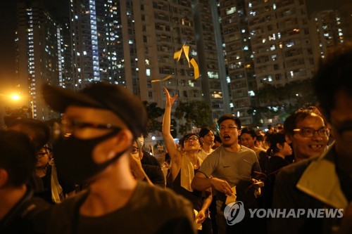 Anti-government protesters throw paper money in the air as a form of protest against the government during the Hungry Ghost Festival in Wong Tai Sin, Hong Kong, China, 09 August 2019. Hong Kong has been gripped for weeks by mass protests, which began in June 2019 over a now-suspended extradition bill to China and have developed into an anti-government movement. The Ghost Festival 2019 will start on 15 August. EPA/JEROME FAVRE