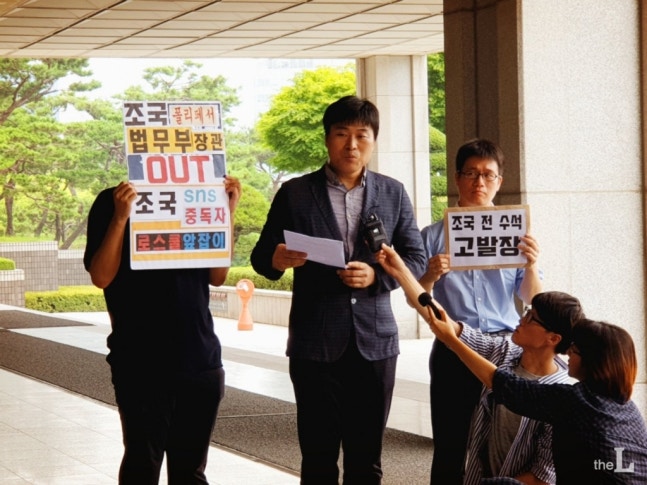 8ÀÏ ¿ÀÀü ¼¿ï ¼Ãʱ¸ ¼¿ïÁß¾ÓÁö°Ë¿¡¼ »ç¹ý½ÃÇè Á¸Ä¡¸¦ À§ÇÑ °í½Ã»ý¸ðÀÓ È¸¿øµéÀÌ Á¶±¹ Àü ¹ÎÁ¤¼ö¼® °í¹ß ±âÀÚȸ°ßÀ» Çϰí ÀÖ´Ù./»çÁø=ÃÖ¹Î°æ ±âÀڽùδÜü°¡ Á¶±¹ Àü ¹ÎÁ¤¼ö¼®ÀÌ SNS¿¡ ÀÌ¿µÈÆ ¼¿ï´ë ¸í¿¹±³¼öÀÇ Àú¼¸¦ ºñ³ÇÏ´Â ±ÛÀ» ¿Ã·Á ¸í¿¹¸¦ ÈѼÕÇß´Ù¸ç °ËÂû¿¡ °í¹ßÀåÀ» Á¦ÃâÇß´Ù.