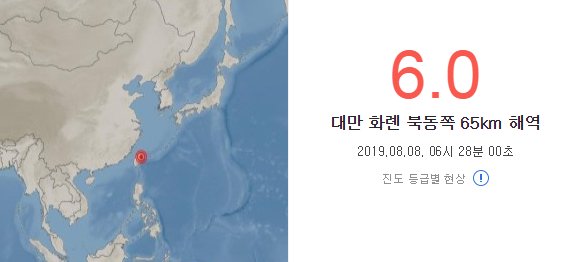 ´ë¸¸ ÁöÁø. [±â»óû] 8ÀÏ(ÇöÁö½Ã°£) »õº® ´ë¸¸ ºÏµ¿ºÎÀÇ µµ½Ã À̶õ(ëñÕµ) ÀÎ±Ù ÇØ¿ª¿¡¼ ±Ô¸ð 6.0ÀÇ ÁöÁøÀÌ ¹ß»ýÇß´Ù. ´ë¸¸ ±â»ó ´ç±¹Àº À̳¯ ¿ÀÀü 5½Ã28ºÐ À̶õ ³²µ¿ÂÊ 35.5§° ÇØ»ó¿¡¼ ¹ß»ýÇßÀ¸¸ç, Áø¿øÀÇ ±íÀÌ´Â 22.5§°¶ó°í ¹àÇû´Ù.