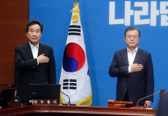 'ÆÂÆ÷ÅÈ' Àü·« ½Ãµ¿¡¦ìí Ç㸦 Â Ä«µå °ü°Ç | | ¹®ÀçÀÎ ´ëÅë·ÉÀÌ 2ÀÏ ¿ÀÈÄ Ã»¿Í´ë¿¡¼ ÀϺ»ÀÇ Ãß°¡ °æÁ¦ º¸º¹ Á¶Ä¡¿¡ ´ëÇÑ ´ëÀÀ¹æ¾ÈÀ» ³íÀÇÇϱâ À§ÇØ ¿¸° Àӽà ±¹¹«È¸ÀÇ¿¡¼ ±¹±â¿¡ °æ·ÊÇϰí ÀÖ´Ù. (»çÁø=¿¬ÇÕ´º½º) |