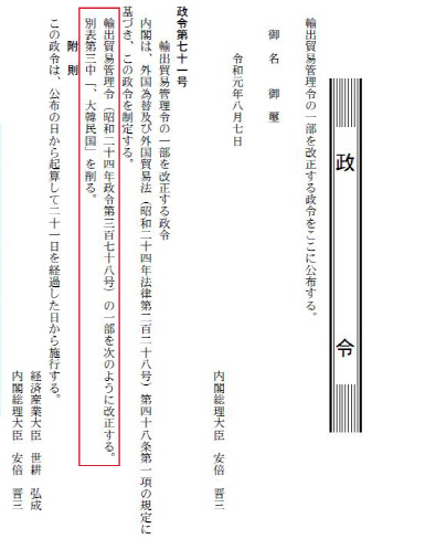 | | Çѱ¹À» ¼öÃâ ½ÂÀÎ ÀýÂ÷ °£¼ÒÈ ÇýÅÃÀ» ÀÎÁ¤ÇÏ´Â »ó´ë±¹ÀÎ À̸¥¹Ù ¡®¹é»ö±¹°¡¡¯(ÈÀÌÆ®¸®½ºÆ®)¿¡¼ Á¦¿ÜÇϵµ·Ï ¼öÃ⹫¿ª°ü¸®·ÉÀ» °³Á¤ÇÑ´Ù´Â »ç½ÇÀÌ 7ÀÏ ÀϺ» Á¤ºÎ °üº¸¿¡ °Ô½ÃµÅ ÀÖ´Ù. °üº¸¿¡´Â ¼öÃ⹫¿ª°ü¸®·ÉÀÇ ÀϺθ¦ °³Á¤ÇØ º°Ç¥ 3¿¡¼ ¡®´ëÇѹα¹¡¯À» »èÁ¦ÇÑ´Ù´Â ³»¿ë(ºÓÀº »ç°¢Çü Å׵θ®)ÀÌ ÀûÇô ÀÖ´Ù. (»çÁø=¿¬ÇÕ´º½º) |