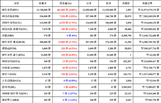 ÇöÀç ¾ÏÈ£ÈÆó °Å·¡¼Ò "ÄÚÀοø"¿¡ µû¸£¸é °¡»óÈÆó ´ëÀå °ÝÀÎ ºñÆ®ÄÚÀÎÀÇ ½Ã¼¼´Â 24½Ã°£ Àü ´ëºñ 461,000¿ø(4.08%) »ó½ÂÇÑ 11,748,000¿ø¿¡ °Å·¡µÇ°í ÀÖ´Ù.