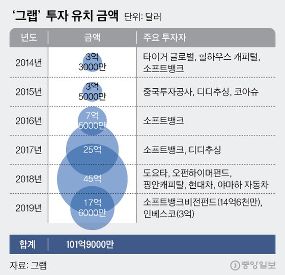 Åýà ȣÃâ ¾Û ½ºÅ¸Æ®¾÷À¸·Î Ãâ¹ßÇØ 7³â ¸¸¿¡ 102¾ï ´Þ·¯(12Á¶¿ø)ÀÇ ÅõÀÚ±ÝÀ» À¯Ä¡ÇÑ È¸»ç°¡ ÀÖ´Ù. ¼ÕÁ¤ÀÇ ¼ÒÇÁÆ®¹ðÅ© ȸÀåÀº ¾Æ¿¹ ¡®¹«ÇÑ Áö¿ø(Unlimited support)¡¯À» ¾à¼ÓÇß´Ù. Â÷·® È£Ãâ ¼ºñ½º´Â ¹°·Ð À½½Ä, ¹è´Þ, ÇコÄɾî, ¸ð¹ÙÀÏ °áÁ¦ µîÀ¸·Î »ç¾÷ ¿µ¿ªÀ» È®´ëÇϰí, ½Ì°¡Æ÷¸£¤ýÀεµ³×½Ã¾Æ¤ýÇʸ®ÇÉ µî µ¿³²¾Æ 8°³±¹ 336°³ µµ½Ã¿¡ ¼ºñ½º¸¦ Á¦°øÇÑ´Ù. ¼¼°è 3´ë Â÷·® È£Ãâ ¾ÖÇø®ÄÉÀ̼Ç(¾Û)À¸·Î ¼ºÀåÇÑ ¡®±×·¦¡¯ ¾ê±â´Ù. µ¿³²¾Æ ½º¸¶Æ®Æù 4´ë Áß 1´ë¿£ ±×·¦ ¾ÛÀÌ ±ò·Á ÀÖ´Ù.
