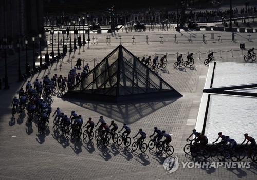 The peloton rides through the courtyard of the Louvre museum during the 21st and final stage of the 106th edition of the Tour de France cycling race over 128km between Rambouillet and the Champs Elysees in Paris, France, 28 July 2019. EPA/RAFAEL YAGHOBZADEH / POOL MAXPPP OUT