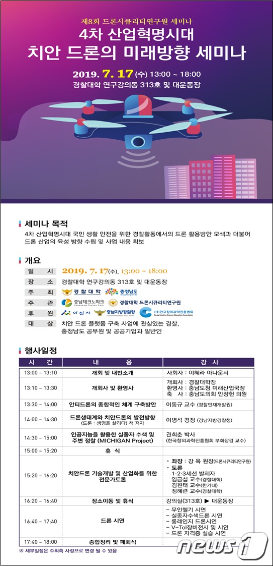 À̹ø ¼¼¹Ì³ª´Â °æÂû´ë µå·Ð ½ÃÅ¥¸®Æ¼ ¿¬±¸¿ø°ú Ãæ³² Å×Å©³ëÆÄÅ©°¡ °øµ¿À¸·Î ÁÖÃÖÇÑ´Ù. µå·ÐºÐ¾ß Àü¹®°¡, °æÂû°ü, µå·Ð¿¡ °ü½ÉÀÖ´Â ÀϹÝÀÎ µî 200¿©¸íÀÌ À̳¯ ¼¼¹Ì³ª¿¡ Âü¼®Çß´Ù.