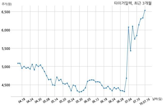 ÇÑÆí, ŸÀ̰ÅÀÏ·ºÀº Àå ¸¶°¨ ÀÌÈÄ ÇØ´ç ±â¾÷°ø½Ã¸¦ ¹ßÇ¥ÇßÀ¸¸ç ¿À´Ã Á¾°¡°¡ 6,540¿ø, °Å·¡·®Àº 490,639ÁÖ·Î, Á÷Àü °Å·¡ÀÏ ´ëºñ 210¿ø(+3.32%) »ó½ÂÇß´Ù.