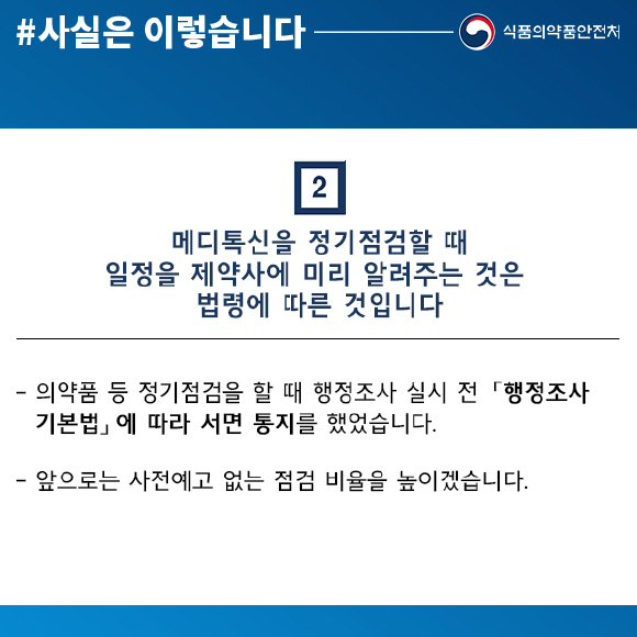 ¡Û ÀǾàǰ µî Á¤±â Á¡°ËÀÇ °æ¿ì ÇàÁ¤Á¶»ç ½Ç½Ã Àü ¡¸ÇàÁ¤Á¶»ç±âº»¹ý¡¹¿¡ µû¶ó ¼¸é ÅëÁöÇϰí ÀÖÀ¸³ª, ¾ÕÀ¸·Î´Â »çÀü¿¹°í ¾øÀÌ ºÒ½Ã Á¡°ËÇÏ´Â ºñÀ²À» ³ôÀ̰ڽÀ´Ï´Ù.