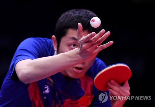 Xu Xin of China in action in the Men's Singles Quarterfinals match two against Hugo Calderano of Brazil during the ITTF World Tour Australia Open 2019 in Geelong, Australia, 13 July 2019. EPA/TRACEY NEARMY