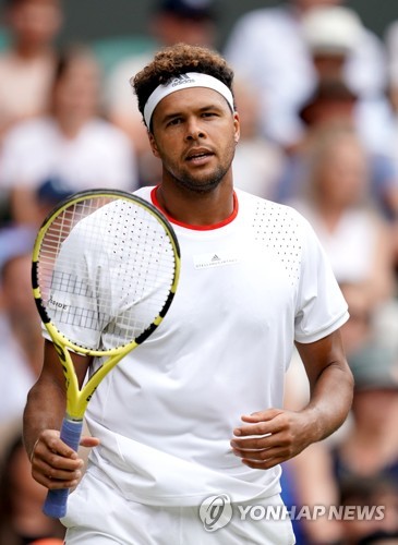 Jo-Wilfried Tsonga of France in action against Rafael Nadal of Spain during their third round match at the Wimbledon Championships at the All England Lawn Tennis Club, in London, Britain, 06 July 2019. EPA/WILL OLIVER EDITORIAL USE ONLY/NO COMMERCIAL SALES