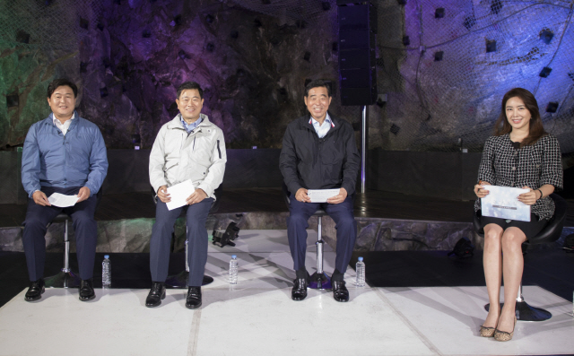 ÀÓº´ÅÃ(¿ÞÂʺÎÅÍ) °æ±âµµ ½ÃÈï½ÃÀå°ú ¹Ú½Â¿ø ±¤¸í½ÃÀå, À±È¼· ¾È»ê½ÃÀåÀÌ Æ¼ºê·Îµå ÇѺû¹æ¼ÛÀÇ ¡®½ÃÀå´Ô ¹¹Çϼ¼¿ä¡¯ ³ìȸ¦ Çϰí ÀÖ´Ù./»çÁøÁ¦°ø=Ƽºê·Îµå