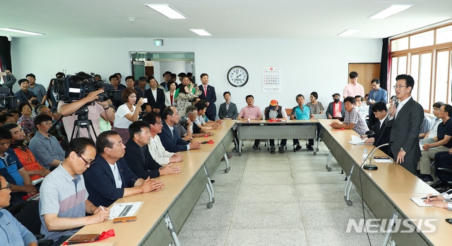¡¼´ëÀü=´º½Ã½º¡½Á¶¸íÈÖ ±âÀÚ = ÇãÅÂÁ¤ ´ëÀü½ÃÀåÀÌ 20ÀÏ ¿ÀÈÄ ¼±¸ ±â¼ºµ¿ÇàÁ¤¼¾ÅÍ¿¡¼ LNG¹ßÀü¼Ò À¯Ä¡ °¥µî°ú °ü·ÃÇØ Áֹΰ£´ãȸ¸¦ ¿°í ¹ßÀü¼Ò À¯Ä¡ öȸÀǻ縦 ¹àÈ÷°í ÀÖ´Ù. 2019.06.20.