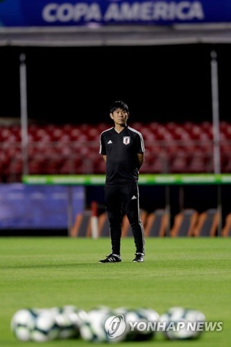 Japan's national team Coach Hajime Moriyasu leads a team's training at the Morumbi stadium in Sao Paulo, Brazil, 16 June 2019. Japan will face Chile on monday for a Copa America group C match on 17 June. EPA/Fernando Bizerra Jr.