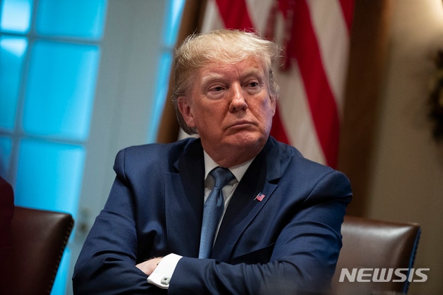 [¿ö½ÌÅÏ=AP/´º½Ã½º] µµ³Îµå Æ®·³ÇÁ ¹Ì±¹ ´ëÅë·ÉÀÌ 9ÀÏ(ÇöÁö½Ã°£) ¹é¾Ç°ü¿¡ ¿¸° ³»°¢È¸ÀÇ¿¡¼ ÆÈ¯À» ³¢°í ´Ù¸¥ »ç¶÷ÀÇ ¹ß¾ðÀ» µè°í ÀÖ´Ù. 2019.12.10